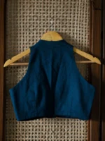 Blue Silk Sleeveless V Neck Benarasi Blouse